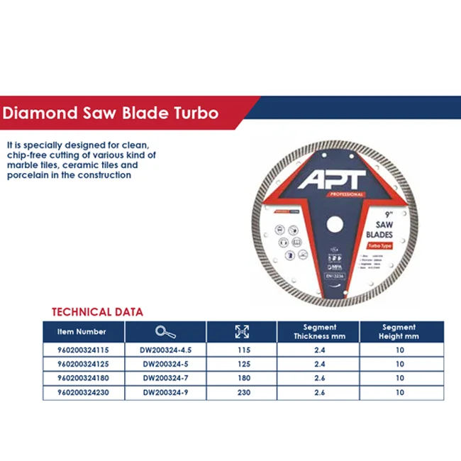 🔹 الموديل: APT DW200324‑5 STD – Turbo Diamond Saw Blade.